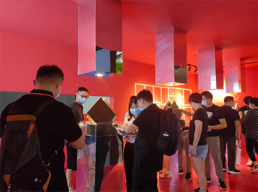 簡(jiǎn)約高級(jí)的紅色展館形象撩人眼球,通過(guò)色彩、結(jié)構(gòu)與材質(zhì)的完美融合,營(yíng)造出一個(gè)高級(jí)感十足的展館。