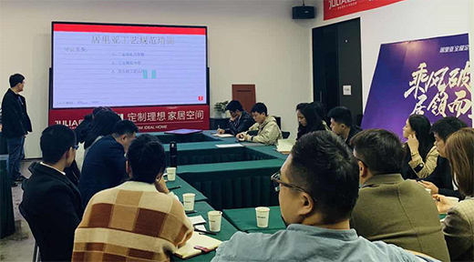 下午,生產(chǎn)部門高長青高老師為大家?guī)砹司实?lt;實木和訂單培訓(xùn)>課程。高老師較為詳細(xì)地梳理了公司生產(chǎn)、銷售及安裝、服務(wù)中的重點問題,并以此展開了詳細(xì)講解,為大家分享了居里亞工藝流程、實木結(jié)構(gòu)等內(nèi)容,為公司終端服務(wù)團隊提供了系統(tǒng)化、針對性培訓(xùn)。