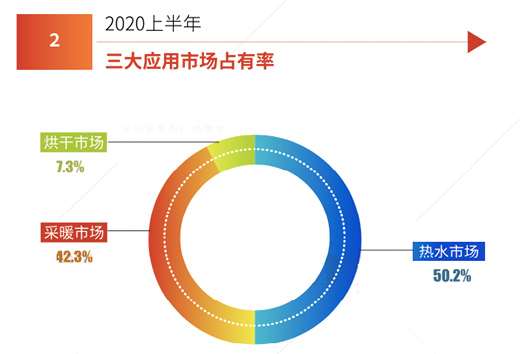 2020年,疫情下各行各業(yè)幾乎都受到了一定影響,出現(xiàn)了業(yè)績(jī)下滑現(xiàn)象,空氣源熱泵行業(yè)無(wú)一幸免!據(jù)i傳媒編輯部歷時(shí)近一個(gè)月的統(tǒng)計(jì)分析,2020上半年度空氣源熱泵市場(chǎng)以同比下滑22.6%,其中,熱水市場(chǎng)占有率為50.2%,采暖市場(chǎng)占有率為42.3%,烘干市場(chǎng)占有率為7.3%。