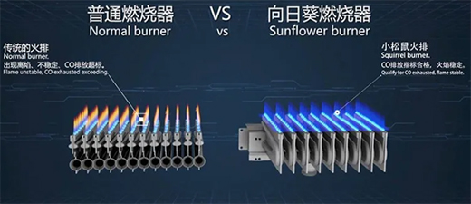 傳統(tǒng)壁掛爐采用普通燃燒器、傳統(tǒng)火排,會出現(xiàn)離焰、燃燒不穩(wěn)定、CO排放超標等問題。小松鼠壁掛爐采用獨家專利向日葵火排設(shè)計(專利號:201521128125.3),提供獨特的燃燒技術(shù),擁有更寬的調(diào)節(jié)比、更穩(wěn)定的燃燒工況。