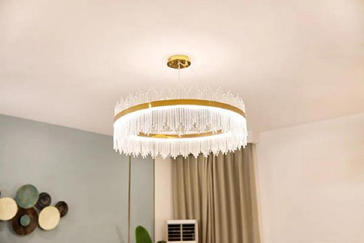 這對年輕的夫妻在找到我的時候說,他們希望自己的家有更多的自然氣息,要干凈明亮,但又不缺精致浪漫的感覺。所以,在客廳燈的選擇上我花了更多的心思,我們前前后后溝通了很多次,最后選中了月影家居的水晶燈。