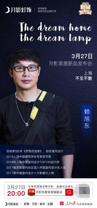 《夢(mèng)想改造家》常駐設(shè)計(jì)師賴旭東先生也將出席本次直播活動(dòng)現(xiàn)場(chǎng),他將化身月影家居潮流推薦官,以設(shè)計(jì)師的視角,和大家一起來(lái)看潮流燈飾新品。