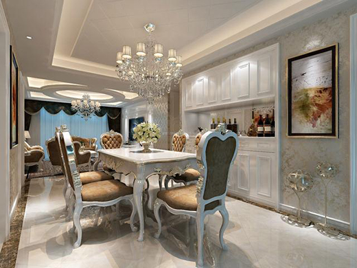 但因是餐廳的緣故,自然不必像客廳那般裝點(diǎn)得太過奢華。