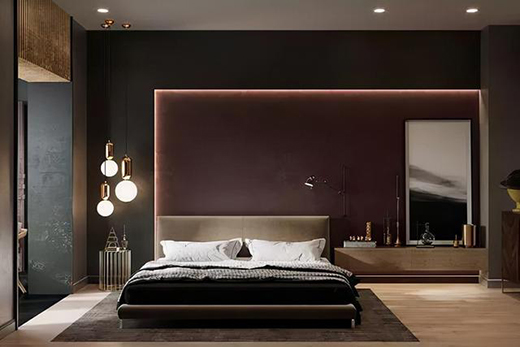 作為睡眠休息的地方,其實(shí)都很不喜歡看到刺眼的燈光,燈帶的設(shè)計(jì)不僅起到美化造型和空間的作用同時(shí)時(shí)也解決了光污染的問題。臥室床頭用燈帶的設(shè)計(jì)是很有必要的,燈帶與頂面、墻面、地面的巧妙組合,充分渲染了精致的層次美,帶來無與倫比的景象。