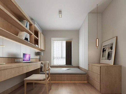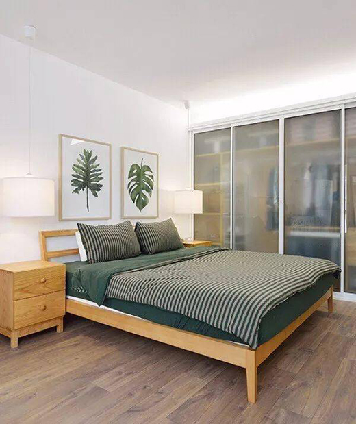 對(duì)于層高比較充足的臥室,可以臥室做上吊頂,然后暗裝上筒燈,讓空間照明更加均勻舒適,而且空間視覺感也會(huì)更加簡潔大方。
