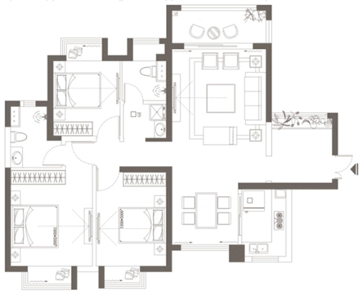 在100.99m2的三房?jī)蓮d里,我們身披陽(yáng)光而起,頭頂月色而眠,盡情享受著專屬于自己的私密空間!