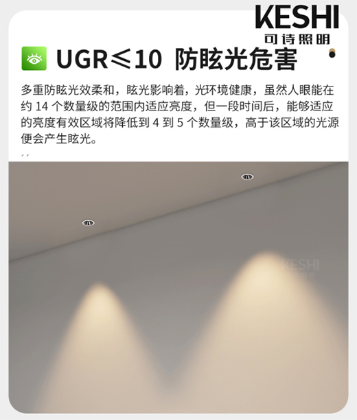 燈具若眩光嚴(yán)重,會讓用戶眼睛感到不適,且眼睛也更容易疲勞或患上各種眼部疾病,因而選射燈時大家千萬別忘了要看燈具的防眩能力。