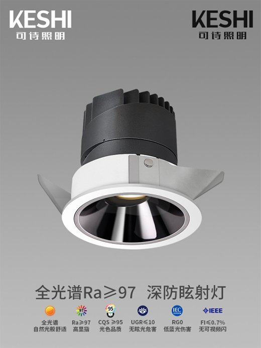 為了讓大家更好地理解,我們以KESHI可詩照明近期新推出的可詩一代-天地系列全光譜射燈為例,看看怎樣才稱得上是一盞好射燈。