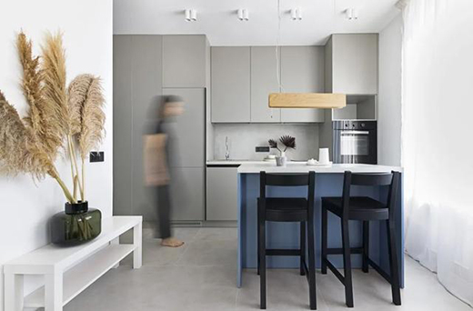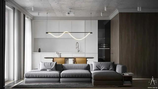 ▼ 小戶型現(xiàn)代公寓,直接頂面走明線,采用三頭明裝射燈以及局部燈帶照明,提升空間現(xiàn)代感,以及燈光的層次,視覺上非常簡潔。