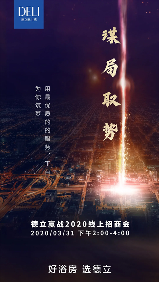 如今,新冠肺炎疫情已演變成“全球大流行”,面對如此嚴(yán)峻的局面,各大家居品牌都在積極整合資源,試圖在危機(jī)中尋找商機(jī)。 在此疫情危機(jī)下,德立將于3月31日舉辦“謀局取勢”贏戰(zhàn)2020線上招商會,屆時將全國各地的意向加盟商聚集在德立線上平臺,讓意向商們足不出戶,就能充分了解德立,在危機(jī)中找到商機(jī),開啟聚勢之路!