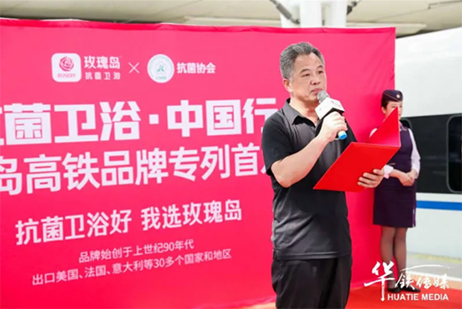 “今天玫瑰島冠名高鐵廣告行為僅僅是一個新的開始,希望全球玫瑰島所有合作伙伴們共同努力、一起向前,讓抗菌衛(wèi)浴中國行,能夠隨著我們一列一列的高鐵,走進全中國每一個角落,把我們的玫瑰島淋浴房帶到每一個家庭!”