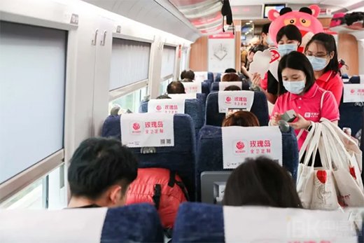 亮眼的車身包裝,以及車內(nèi)隨處可見的玫瑰島元素,無不昭示著這是一列來自玫瑰島的專列號。高鐵上,來自全國各地的乘客們還與玫瑰島伙伴們進行了一場浪漫而有趣的互動,通過一系列的互動,將品牌主張更好地傳遞給更多高端用戶群體,也讓玫瑰島抗菌衛(wèi)浴中國行更加地鮮活且具有社會價值。