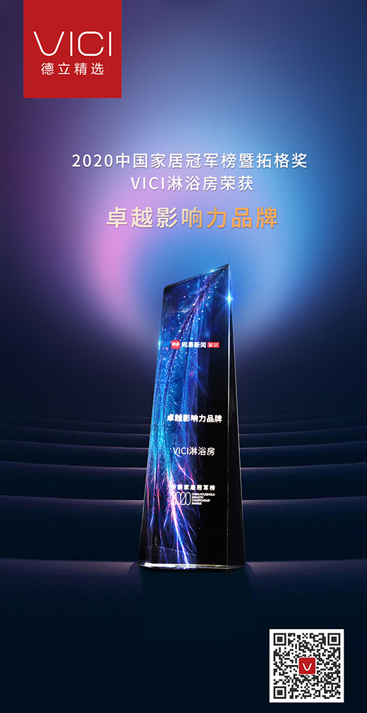 12月29日下午,“向好生活提案——網(wǎng)易2020中國家居冠軍榜暨拓格獎頒獎盛典”在廣州隆重舉辦,家居領(lǐng)袖齊聚,共襄行業(yè)年度盛宴。本次大會上頒發(fā)了多項(xiàng)重磅獎項(xiàng),德立淋浴房榮獲2020中國家居冠軍榜“匠心質(zhì)造品牌”,德立精選VICI,榮獲“卓越影響力品牌”。由此可見德立及德立精選VICI品牌在行業(yè)內(nèi)以及消費(fèi)者中的影響力和知名度。