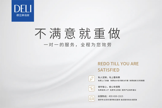 品質(zhì)保證,是消費者對淋浴房最基本也是最核心的訴求。為此,一方面,德立終端門店推出“不滿意就重做”的金牌服務(wù)以及售后服務(wù)24小時快速響應(yīng)的機制來滿足客戶的需求,解決消費者的痛點問題。