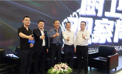 廚衛(wèi)資訊創(chuàng)始人喻鎮(zhèn)榮(中)、FRAE董事長(zhǎng)張海鋒(左二)、萊博頓市場(chǎng)總監(jiān)黃治鵬(右一)、蟻安居董事長(zhǎng)李琦(右二)、廚衛(wèi)資訊喻月明(左一)
