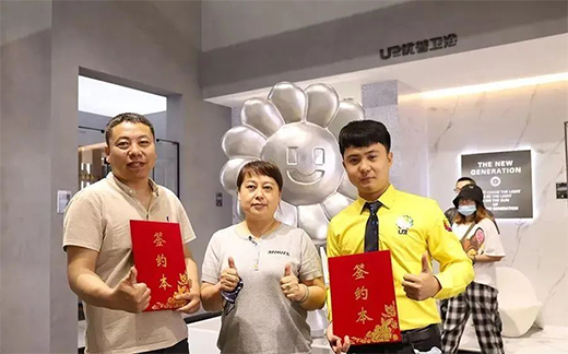 在眾多淋浴房品牌中,張兆凱對優(yōu)普情有獨鐘,從2019年在上海國際廚衛(wèi)展看到優(yōu)普的產(chǎn)品之后,默默關注了優(yōu)普兩年。2021年,張總在得知優(yōu)普再次參展之后,又一次來到優(yōu)普展館,現(xiàn)場深入了解了優(yōu)普的品牌發(fā)展和產(chǎn)品研發(fā)實力,對優(yōu)普的產(chǎn)品很認可,有信心,覺得優(yōu)普是一家追求品質的品牌,更加堅定了加入優(yōu)普的決心,果斷簽署合作協(xié)議。