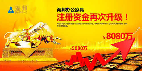 眾所周知,一家有實力的企業(yè),外在注冊資金的多少,內(nèi)在產(chǎn)品的質(zhì)量,決定企業(yè)未來的發(fā)展方面。作為中國著名辦公家具品牌海邦原來的注冊資金就有5080萬元,在行業(yè)中已屬于佼佼者。