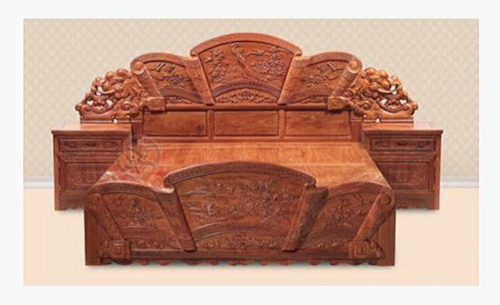 現(xiàn)代人的審美需求中,對(duì)純粹的東西感興趣。如做衣服要純毛的、純麻的、純絲的、純綿的。王士豐生產(chǎn)的紫檀,外形沉穆雍容,顏色非常沉靜,從視覺(jué)上就取悅于人。它閃著一種金屬的光澤,綢緞一樣的光澤。紫檀沒(méi)有太大的料,俗稱“十檀九空”。紫檀長(zhǎng)大了以后內(nèi)心是空的,會(huì)腐朽,所以非常不出材料,因而顯得更加名貴。當(dāng)?shù)窨檀蚰ヒ院笥幸环N模壓感,就是像沖壓出來(lái)的花紋。我們看到有些優(yōu)良的雕刻你感覺(jué)都不像雕出來(lái)的,好像機(jī)器在高壓下把它壓出來(lái)的,這種感覺(jué)是其他木頭達(dá)不到的。由于它的這種內(nèi)在好處,才使它能夠穩(wěn)坐中國(guó)古典家具的材質(zhì)的第一把交椅。