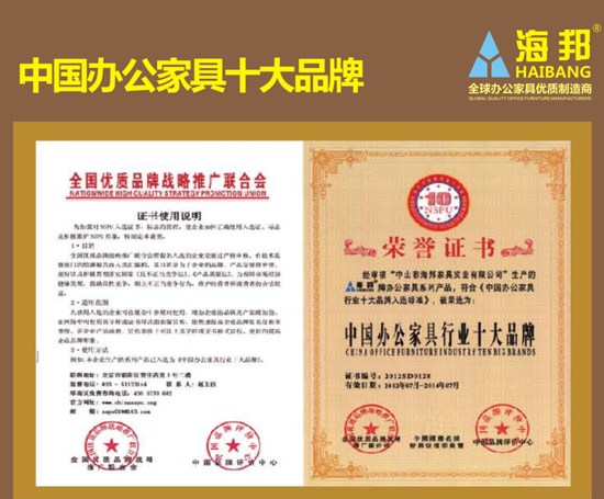海邦家具榮獲中國(guó)辦公家具十大品牌榮譽(yù)稱號(hào)