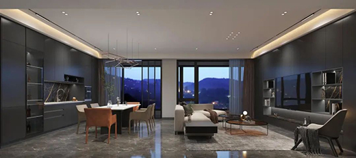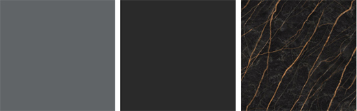 布好燈光和鮮花,用深空灰搭配濟(jì)州灰去塑造一個(gè)燭光搖曳的夜。濟(jì)州灰啞光膚感的表面似是絲綢般的質(zhì)感,讓人不自覺放松。沉靜內(nèi)斂的灰色,因勞倫黑金的配合,盡顯黑金格調(diào),使得空間氛圍優(yōu)雅而神秘。