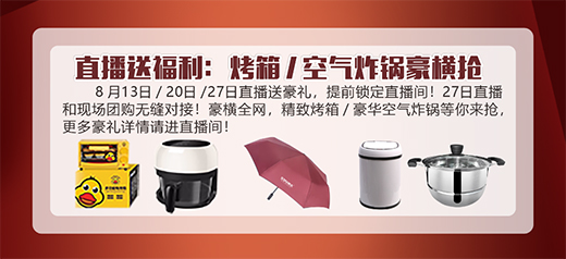 27日直播和現(xiàn)場(chǎng)團(tuán)購(gòu)無(wú)縫對(duì)接!豪橫全網(wǎng),精致烤箱/豪華空氣炸鍋等你來(lái)?yè)?,更多豪禮詳情請(qǐng)進(jìn)直播間。