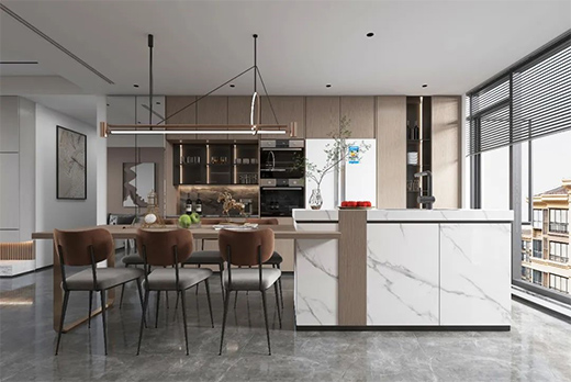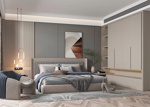 雁行意木深色肅雅,紋理爽直,深淺過渡勻而不亂。將細(xì)密折線藤紋隱于科技木間隙,如天際風(fēng)云疏雅,又如雁陣成列而飛。遠(yuǎn)觀大氣沉穩(wěn),近看秀雅工整,帶著些領(lǐng)頭雁式的端方持重。
