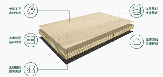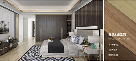 這款板材的飾面采用厚度達到0.5mm以上的珍貴天然木皮、染色木皮或科技木皮,立體感更強,紋理更清晰,裝飾效果更佳。而且采用厚皮無縫拼接技術,相較傳統(tǒng)薄皮手工貼面,具有無重疊、無離縫等特點,給您帶來完美體驗。