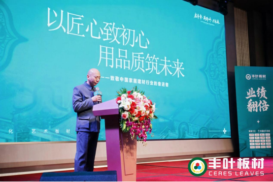 在《品牌布局》環(huán)節(jié),豐葉板材副總經(jīng)理、品牌運(yùn)營負(fù)責(zé)人王賽紅先生發(fā)表了題為《以匠心致初心,用品質(zhì)筑未來》的演講。他回顧了豐葉板材從1992年創(chuàng)業(yè)至今的奮斗歷程,并分享了豐葉品牌的核心優(yōu)勢與未來戰(zhàn)略。