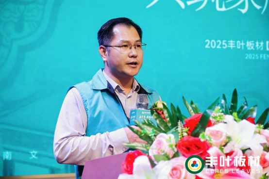 在《新品發(fā)布》環(huán)節(jié),豐葉板材副總經理、品牌運營負責人王賽紅先生以“春潮涌動·創(chuàng)造未來”為主題,發(fā)布了2025年度兩大創(chuàng)新產品——“深海系列”海洋板與“磐石系列”抗變形板,開啟了家居板材行業(yè)的新紀元。