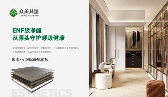 眾美其屋板材用嚴(yán)苛標(biāo)準(zhǔn)鑄就環(huán)?!靶尽辈?,以創(chuàng)新工藝滿足審美追求,讓家不僅成為溫馨的港灣,更是孩子無憂成長的樂園。