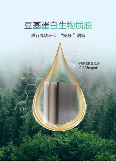 告別傳統(tǒng)含醛膠黏劑,創(chuàng)新采用豆基蛋白生物質(zhì)膠,以植物蛋白的天然穩(wěn)定黏性,讓板材飾面無懼溫差與歲月侵蝕,長久使用依舊平整順滑,不開裂、不起翹;再搭配高密度優(yōu)質(zhì)基材,更賦予板材卓越的防潮耐刮性能,輕松應(yīng)對廚房的潮濕水汽、客廳的日常磕碰磨損。