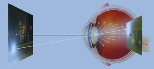 對于眩光的定義,維基百科給出的解釋是:眩光即刺眼,是因視野內的亮度大幅超過眼睛所適應,會導致煩擾、不舒服或視力受損。簡單來說,在視野中某—局部地方出現(xiàn)過高的亮度或前后發(fā)生過大的亮度變化,就容易產(chǎn)生眩光。