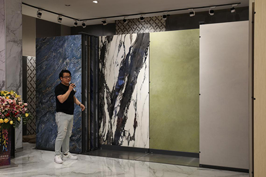 萬(wàn)眾期待下,創(chuàng)意玩家副總經(jīng)理郭權(quán)烽先生發(fā)布了精彩奪目的2020新品。有更健康環(huán)保的地板產(chǎn)品,也有實(shí)用性與裝飾性更強(qiáng)的墻板產(chǎn)品,琳瑯滿目的新品展示在屏幕前,讓觀眾目不轉(zhuǎn)睛,生怕沒(méi)將產(chǎn)品亮點(diǎn)看透。郭總專業(yè)的講解新品的亮點(diǎn)與賣(mài)點(diǎn),讓觀眾能對(duì)新品產(chǎn)生一個(gè)全面立體的認(rèn)識(shí)。