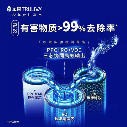 沁園自從1998年發(fā)明飲水機(jī)專(zhuān)用凈水器以來(lái),始終著眼于守護(hù)飲水健康,深耕科技創(chuàng)新,以先進(jìn)技術(shù)確保安全好水。去年開(kāi)始應(yīng)用于旗下部分產(chǎn)品的恒凈極濾??科技不斷優(yōu)化,從3芯5級(jí)精濾升級(jí)為7維RO納米篩,可以有效濾除64種有害物質(zhì)[1];整機(jī)三芯系統(tǒng)設(shè)計(jì),包括RO反滲透濾芯、前置復(fù)合濾芯,以及CTO炭棒濾芯,協(xié)同高效輸出,幫助整機(jī)達(dá)到99%的去除率[2];1000G的產(chǎn)品過(guò)濾性能可以實(shí)現(xiàn)9噸純水性能不衰減[2]。三管齊下,為消費(fèi)者帶來(lái)純凈、高效、持久的過(guò)濾體驗(yàn)。
