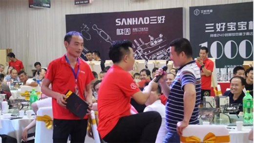 觀摩會在17日晚上三好寶寶板專業(yè)人士聯(lián)誼會正式拉開帷幕,聯(lián)誼會由營銷總監(jiān)張偉主持,通過品牌介紹、產品差異化體驗、趣味有獎問答讓當地木工、裝飾公司等專業(yè)人士對三好品牌、產品有了充分的認識,隨著新穎的專業(yè)人士合作政策及合作方式公布,大家踴躍上臺訂貨將聯(lián)誼會推向高潮,收銀區(qū)不斷增加工作人員收銀才保持正常秩序,現場斬獲訂單近百單。