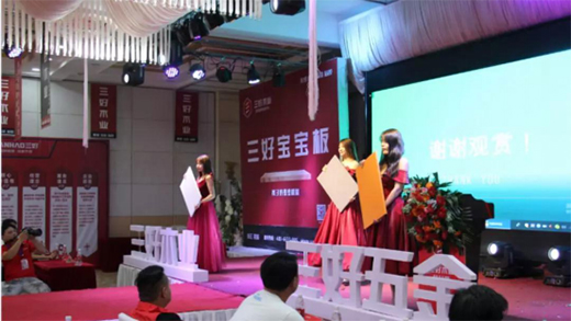 隨著一段充滿青春活力的舞蹈結束,優(yōu)雅美麗的模特手持新花色樣板登臺,三好寶寶板新奢定制系列產品正式亮相,新奢系列產品是三好瞄準定制市場隆重推出的差異化定制產品,將定制以全新的模式導入三好運營體系,助力傳統(tǒng)板材商更平穩(wěn)的嫁接到定制板塊。