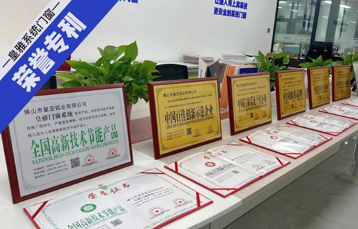 皇雅門窗系統(tǒng)榮獲多項(xiàng)榮譽(yù)證書(shū):廣東省門窗協(xié)會(huì)副會(huì)長(zhǎng)單位、中國(guó)十大門窗品牌、中國(guó)十大家裝門窗品牌、中國(guó)十大鋁合金門窗品牌、中國(guó)百佳創(chuàng)新示范企業(yè)、中國(guó)門窗系統(tǒng)行業(yè)十大品牌、中國(guó)門窗系統(tǒng)十佳企業(yè)、中國(guó)馳名品牌、全國(guó)高新技術(shù)節(jié)能產(chǎn)品、質(zhì)量·服務(wù)·信譽(yù)AAA級(jí)品牌。