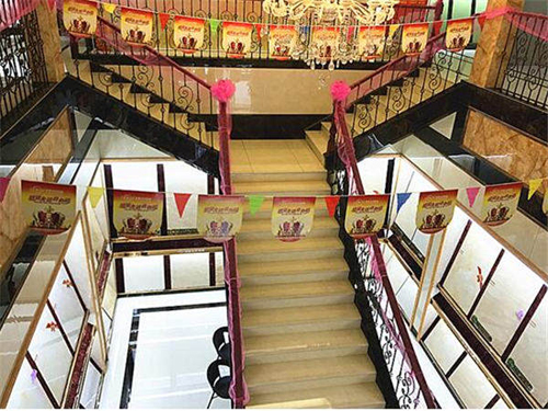 冠德卡瑪陶瓷臨沂旗艦店整體設(shè)計(jì)獨(dú)特,店內(nèi)采用中空設(shè)計(jì),不僅恢宏大氣,高端時(shí)尚,中央天花板的三層水晶吊燈使整體空間盡顯富麗堂皇,而中空設(shè)計(jì)與吊燈又巧妙地將兩層空間連接起來,自然過渡,使選材區(qū)、樣版間、走廊互相呼應(yīng),相得益彰。