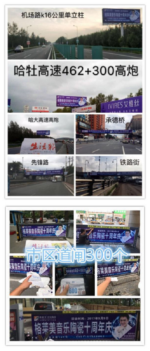市區(qū)道閘上、隨處可見的是湯鎮(zhèn)宗為8月15日-9月9日格萊美音樂陶瓷10周年慶黑龍江省聯(lián)動助陣的廣告畫面,實(shí)力霸屏搶占眼球,此時廣告只服格萊美!9月9日,湯鎮(zhèn)宗在黑龍江省聯(lián)動會場等著你喲!