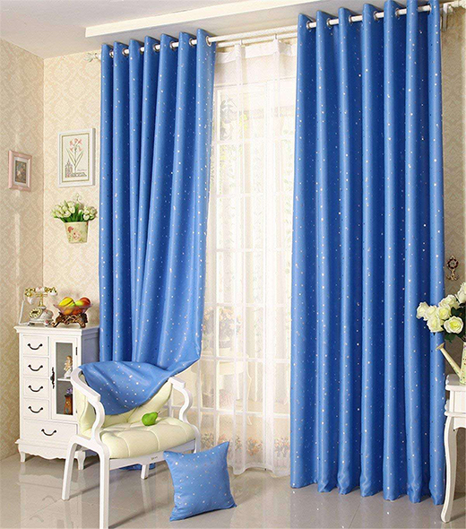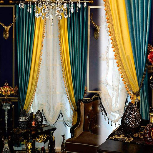 04、藍(lán)色與黃色窗簾,兩種都是亮色,提亮空間,在這里如果純搭配藍(lán)色的窗簾似乎沒有那么好看;