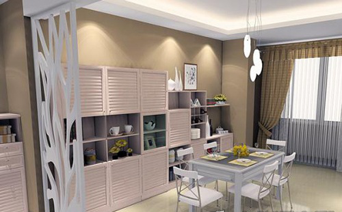 簡單的背景墻裝飾和餐邊柜之間的搭配組合就營造除了歐式的簡約風(fēng)格,整個(gè)家居的氛圍是相當(dāng)不錯(cuò)的,黃色的墻面給人一種溫暖的感覺。燈飾的造型也是很有特色的,陽光般的既視感,深暖系列的色彩溫暖暖了整個(gè)空間,白色額的窗簾讓光線變得柔和,有一種溫馨的氣息。