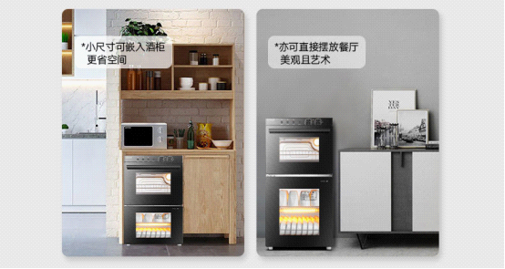 在符合藝術(shù)審美及實用價值的設(shè)計下,“創(chuàng)爾特烤箱、消毒柜一體機”簡約美觀更百搭,既能以“嵌入式”形式融入廚房,又能以“立式”狀態(tài)直接擺放在餐廳,大為彰顯時尚家居氣派。