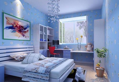在臥室里采用淺藍(lán)色碎花歐雅壁紙,朵朵桃花花姿俏麗,迎風(fēng)綻放清新自然,讓人在春日里感受到一絲絲清涼。淺藍(lán)色會讓人感覺空間更明亮,而碎花的圖案會讓客廳更添親切感,溫馨而又舒適。搭配簡潔的沙發(fā)、單純的色彩和質(zhì)樸的風(fēng)格讓居室呈現(xiàn)出一種理性之美,不免將人帶入春的美好意境。