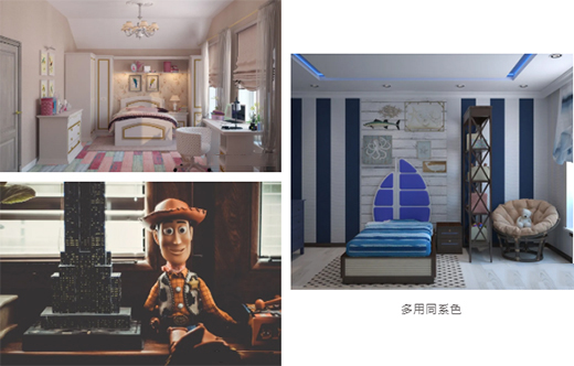 在兒童房的設(shè)計(jì)中,顏色是最容易被混搭的元素,如果在可控的范圍內(nèi),混搭是非常好的選擇。