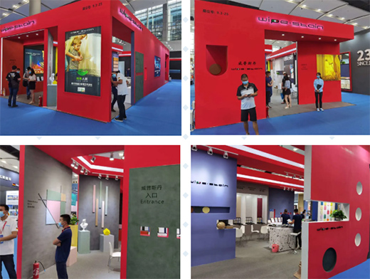 展館外墻用的這個(gè)涂料正是本次展會(huì)主推的產(chǎn)品系列之一(Superbianco Extra 蘇伯利亞)。紅色的蛋殼光色彩沖擊,寓意藝術(shù)涂料市場(chǎng)的紅紅過火,正如開展首日,威普斯丹(Wipe stain)就喜迎“開門紅”一樣。
