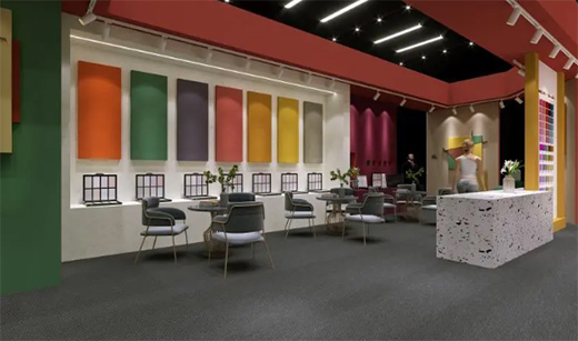 威普斯丹(Wipe stain)本次的展廳設(shè)計(jì)基本是以上述六大產(chǎn)品系列為主,通過展板上六款不同材料、不同色彩、不同工藝的產(chǎn)品表現(xiàn),讓參觀者直觀的感受到藝術(shù)涂料的層次與肌理,碰撞出不同的視覺享受。整個(gè)展廳,色彩豐富卻又不失素雅,色調(diào)時(shí)尚舒適,引領(lǐng)著未來的藝術(shù)涂料市場(chǎng)風(fēng)格。