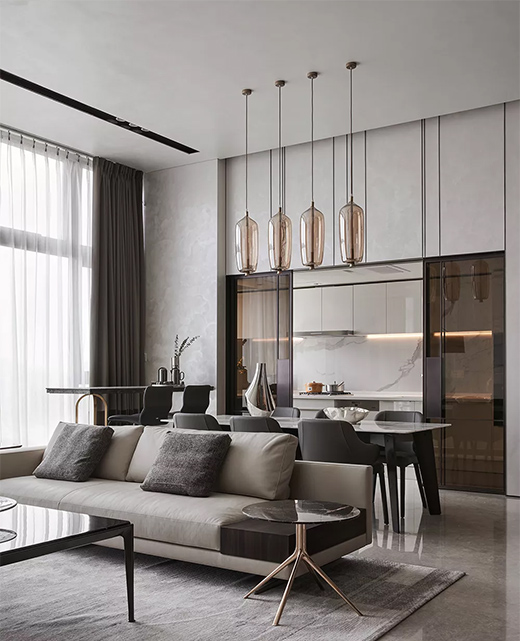 材料運用和色彩選擇上顯得額外低調(diào)和柔和,整個空間色彩搭配顯出個性與品位,簡約而時尚,可以承載更多的時尚元素,同時讓家更寧靜而溫馨。
