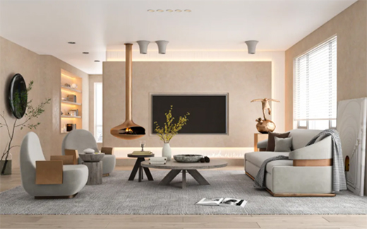 清新淡彩風格分別以米色、杏仁色、鵝黃色等有助于心靈舒壓的色系為主,讓身心借由柔和色彩獲得舒緩空間,這個系列的顏色是藝術涂料裝修的基本款。