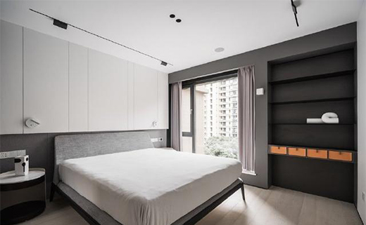 主臥運(yùn)用大面積的黑白灰搭配