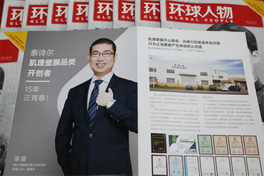 五月,剛歡慶過勞動者的汗水,就收獲了汗水灑后的喜悅。據(jù)最新消息,佛山市順德區(qū)清大潤彩涂料有限公司董事長李萌先生榮登我國權(quán)威雜志——《環(huán)球人物》,向廣大讀者講述了泰詩爾肌理壁膜開山鼻祖的品牌故事。